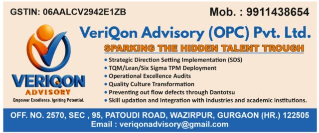 Veriqon Advisory (OPC) is a specialized consulting and training organization focused on driving Operational Excellence, Total Quality Management (TQM), and Business Transformation across industries. With over four decades of expertise, the firm supports organizations in enhancing productivity, improving quality, and building sustainable systems through structured methodologies. Its core offerings include Quality Assurance & Improvement tools, Lean Six Sigma, TPM, Quality Circles, and leadership development programs. Veriqon Advisory adopts a practical, result-oriented approach, combining training with implementation support to deliver measurable outcomes and foster a culture of continuous improvement and zero defects.